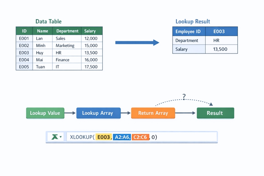 Nếu VLOOKUP là thứ khiến bạn phải “né tránh” mỗi khi làm báo cáo, thì XLOOKUP giống như một người bạn mới, hiểu chuyện và biết điều. 😌
