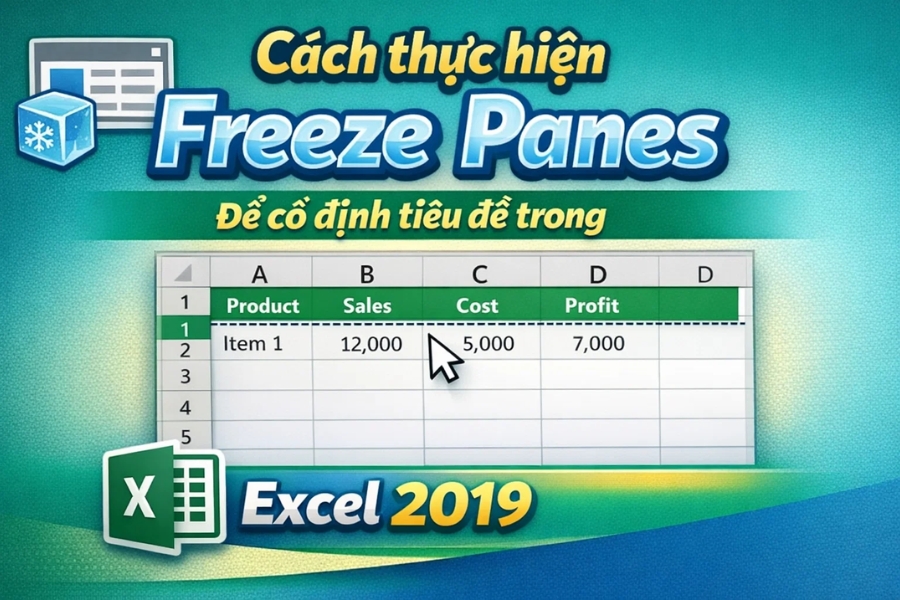 May mà Excel 2019 có một tính năng cực kỳ hữu dụng: Freeze Panes. Dịch kiểu dân dã là “đóng băng ngăn” — nghe hơi lạnh lẽo, nhưng hiệu quả thì… ấm lòng thật. Freeze Panes giúp bạn cố định tiêu đề hàng hoặc cột, để dù bạn cuộn đi đâu, phần tiêu đề vẫn ở đó, nhìn phát là hiểu. Không lạc, không nhầm, đỡ sai số.