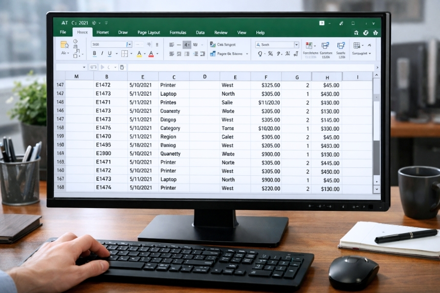 May mà Excel 2021 có tính năng Freeze Panes. Nói đơn giản, nó giúp bạn cố định tiêu đề (dòng đầu, cột đầu, hoặc nhiều dòng/cột) để dù bạn cuộn dọc hay kéo ngang, phần quan trọng vẫn nằm yên ở đó. Nhìn bảng sáng sủa hẳn, làm việc cũng trơn tru hơn rất nhiều.