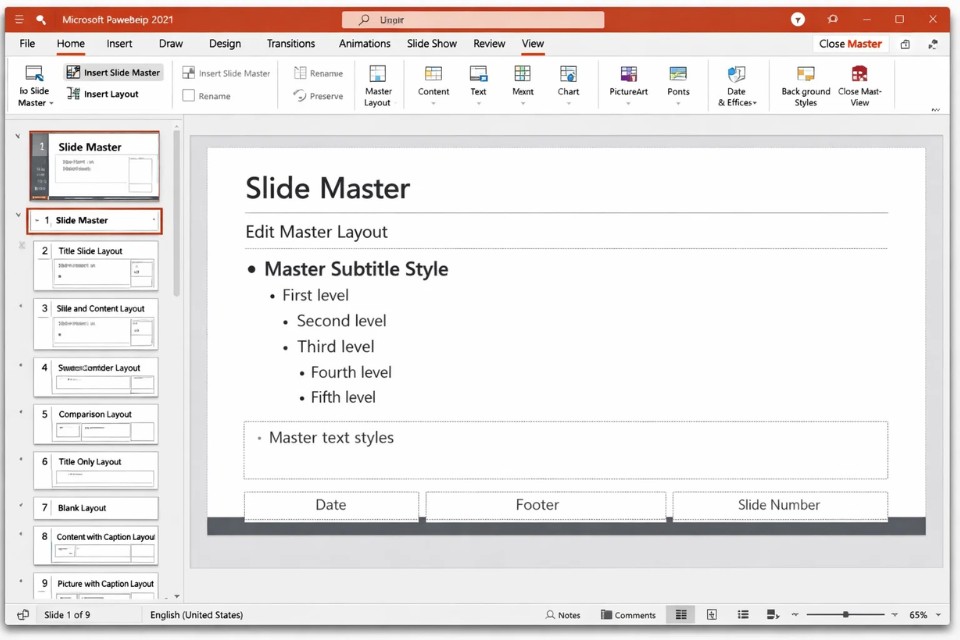 Trong khi đó, PowerPoint 2021 có sẵn một công cụ sinh ra để giải quyết đúng chuyện này. Nó không mới, không hào nhoáng, nhưng cực kỳ lợi hại. Tên nó là Slide Master. Và một khi đã quen tay rồi, bạn sẽ khó mà quay lại cách làm cũ.