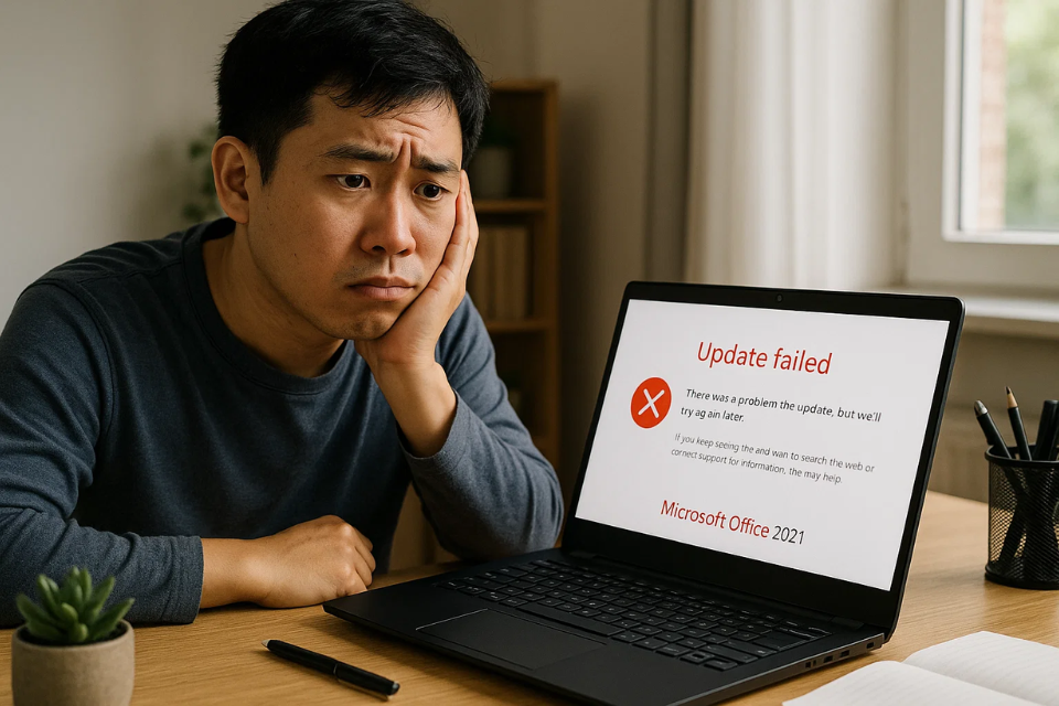 Nếu bạn đang dùng Office 2021 và gặp thông báo kiểu “Update failed” hay “We couldn’t install this update”, thì xin chia buồn — bạn không cô đơn đâu. Mình từng bị y chang! Đang làm việc, Word báo cần cập nhật, bấm “Update now” cái là… lỗi. Thật sự bực. Nhưng may mắn là mình đã tìm ra vài cách khá hiệu quả để xử lý tình huống này mà không cần cài lại toàn bộ Office.