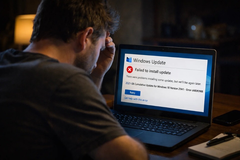 Bạn đang cập nhật Windows 10, mọi thứ tưởng như ổn rồi… nhưng cuối cùng lại hiện ra dòng lỗi 0x800f0988. Thế là xong, update fail, máy báo lỗi, bạn thì ngồi nhìn màn hình kiểu: “Ủa rồi sao nữa?”