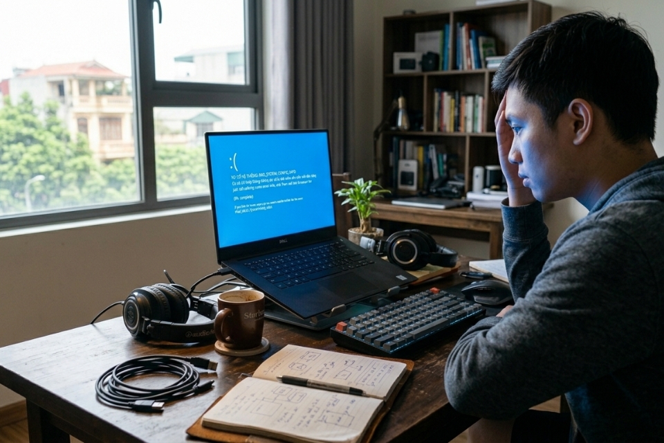Bạn bật máy lên. Chưa kịp làm gì nhiều. Hoặc đang dùng bình thường. Rồi bỗng nhiên… màn hình xanh xuất hiện.