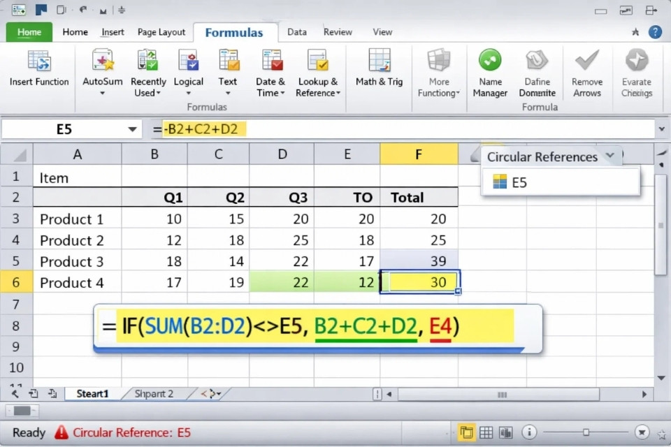 3. Cách Excel 2010 báo lỗi Circular Reference