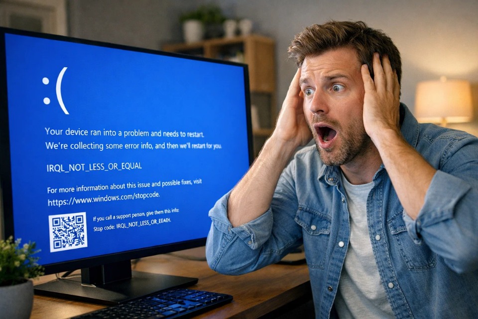Bạn đang dùng máy bình thường. Có thể là đang làm việc, xem phim, hoặc chơi game. Rồi đột nhiên… bụp — màn hình xanh xuất hiện, kèm dòng chữ đáng ghét: IRQL_NOT_LESS_OR_EQUAL. Máy tự khởi động lại, còn bạn thì ngồi đơ ra vài giây.